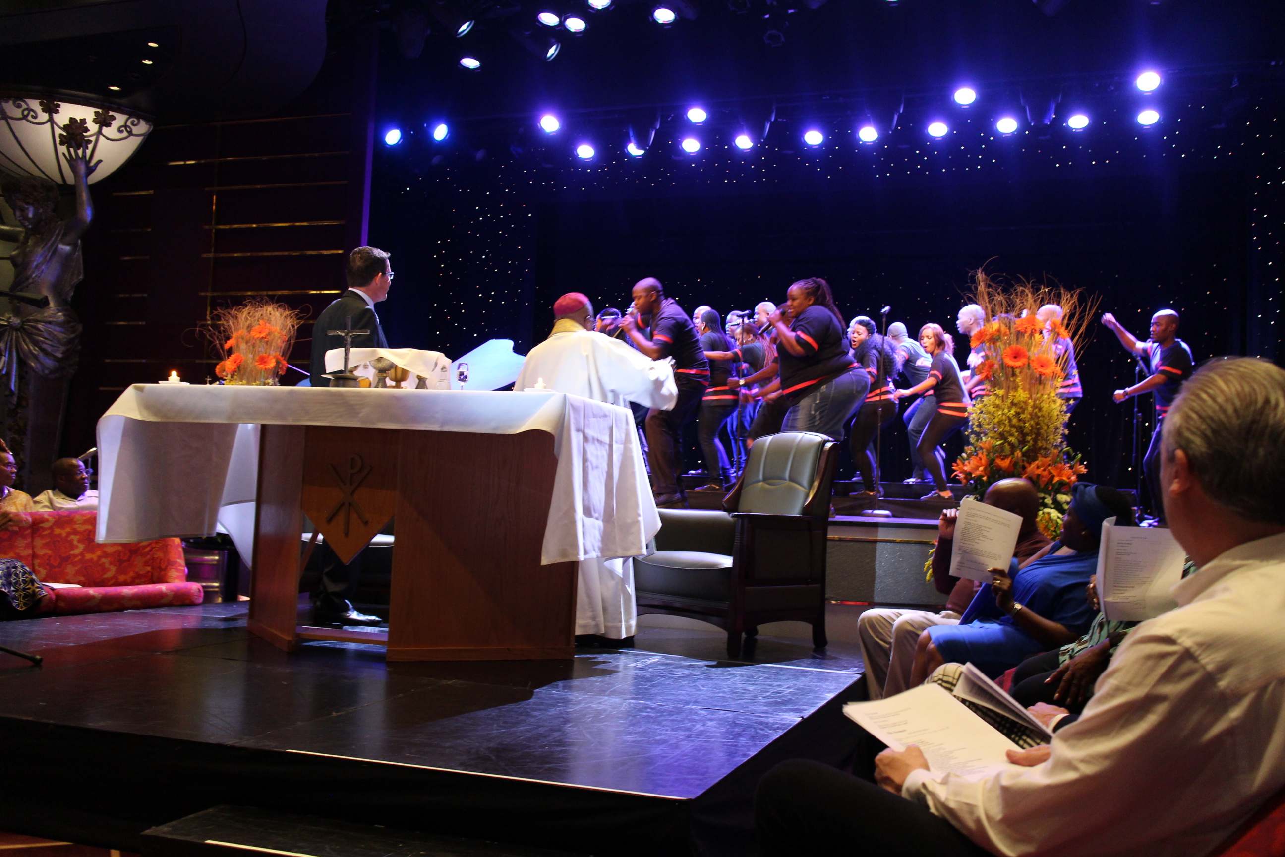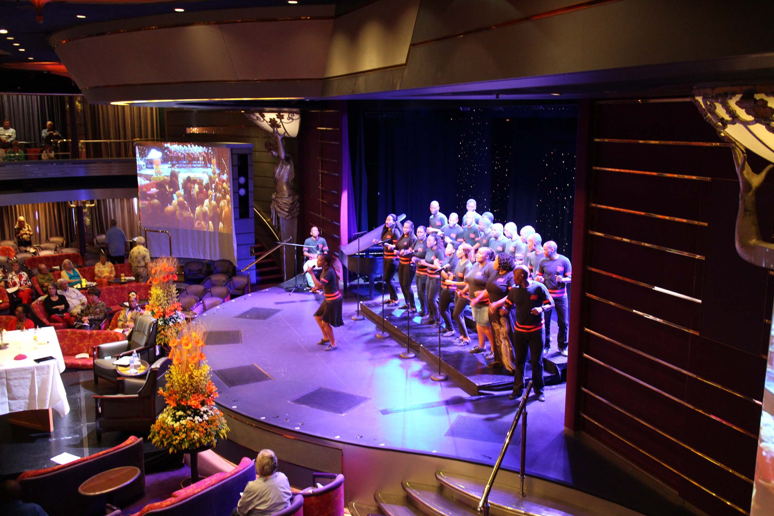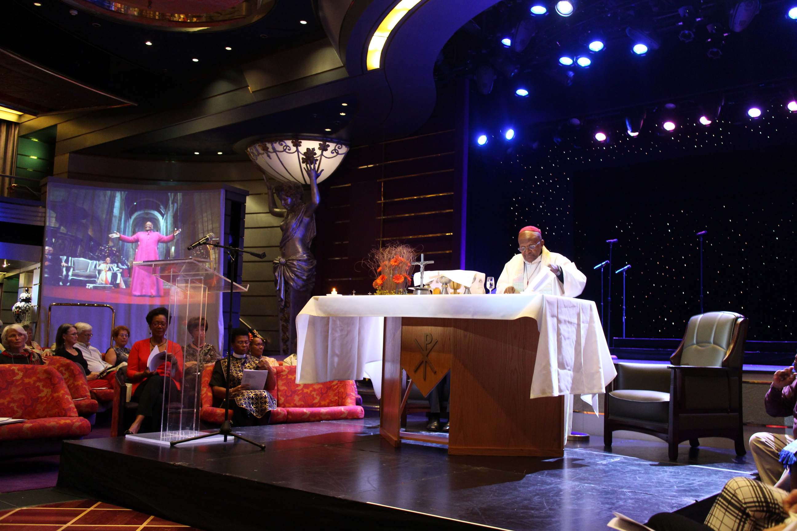 A good night’s sleep and then the start of another day, a Sunday Eucharist, with the Archbishop, in the Queen’s Lounge. The choir was on stage and a small platform had been arranged on what was our dance floor. The singing was once again, amazing.