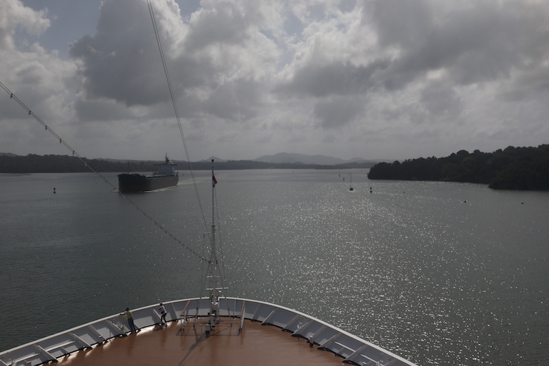 As we leave Gatun locks, we are told that some northbound ships are behind schedule and we will therefore have to lose time, we cannot enter Culebra Cut until they’re clear. So we do a fly-by of the construction of the new Gatun lock, a massive undertaking and by all accounts, well over schedule and budget, (of course).