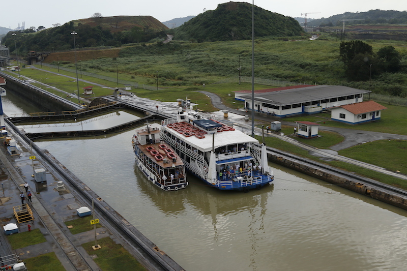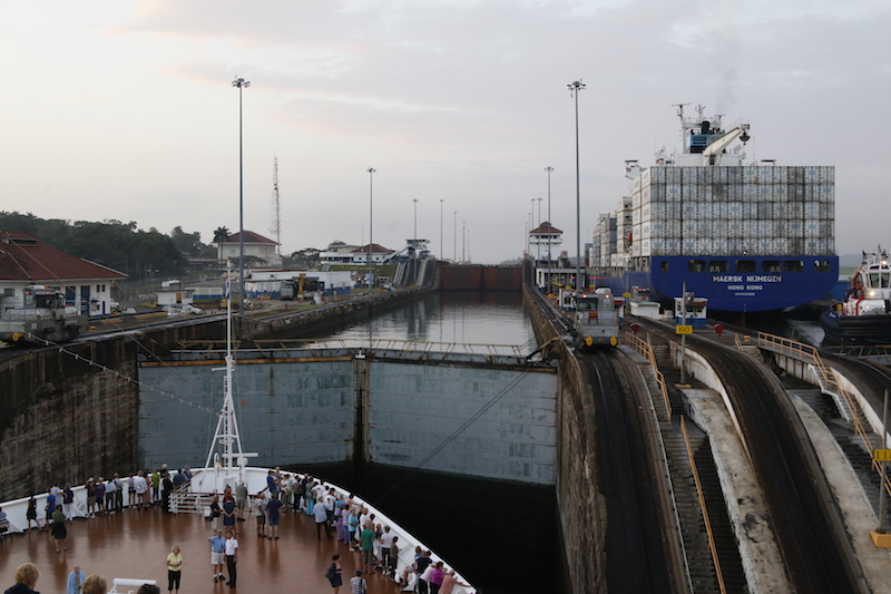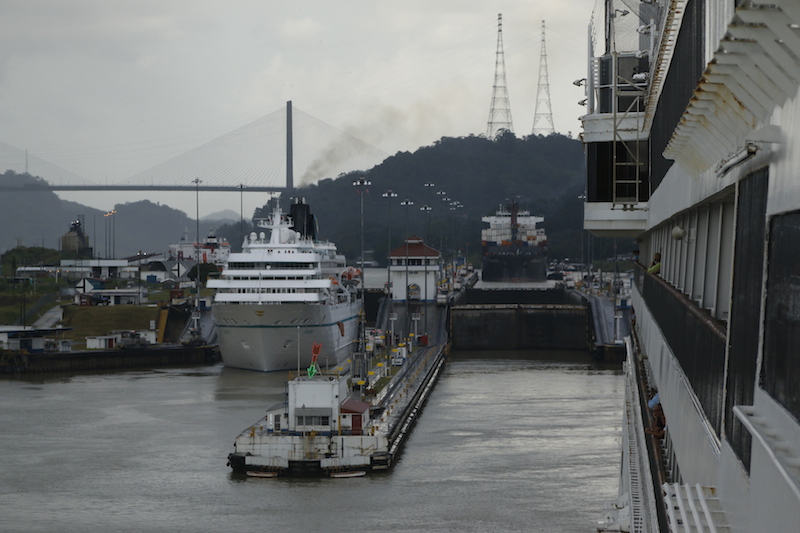 Going into Gatun, we are followed by the ‘Zuiderdam’, another of our ships; she is going to transit Gatun and then anchor in Gatun Lake, her guests then being transferred ashore on tours before she leaves and again, out of Gatun once more and back into the Caribbean.