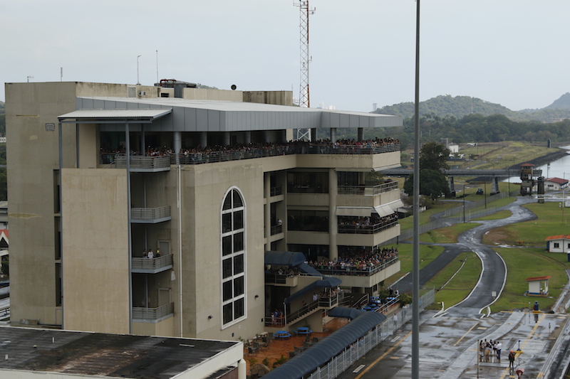 It is ‘Martyrs’ day in Panama, a public holiday and I have never seen so many people in the Visitors centre, watching us pass, it was packed and of course, much waving to and fro from us to them and back.