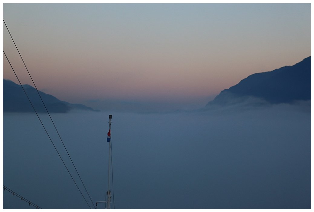 ‘Tis the season to be foggy, tra-la-la-la.  I am being plagued by the stuff; most of the way south from Ketchikan, in the Puget Sound, (even docking in Seattle), in the Juan de Fuca Straits, off the west coast of Vancouver island and, this morning, all the way up the Gastineau Channel, on approach to Juneau.