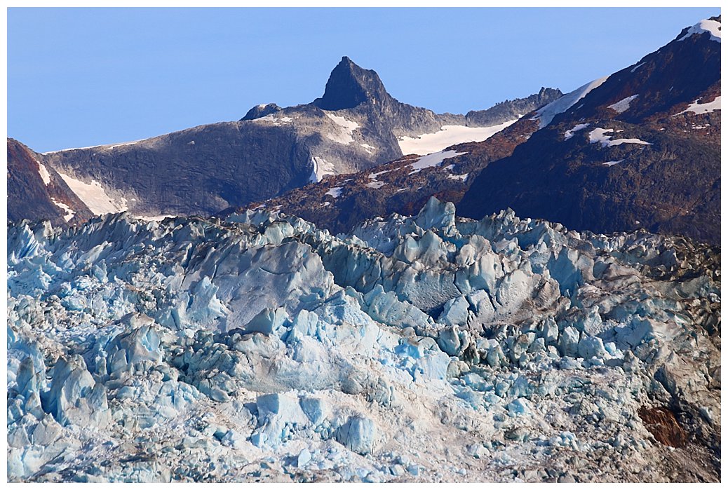 Tracy Arm was a treat and, stopping to view the Sawyer glacier, gave one a sense of the majesty of nature. We stayed for an hour, alternating sides so both balconies could view and then slowly steamed back. We passed the “Century”, on her way up to the glacier; when she got there, she turned round and came straight out again! Wot? No glacier viewing??? She must be in a hurry.
